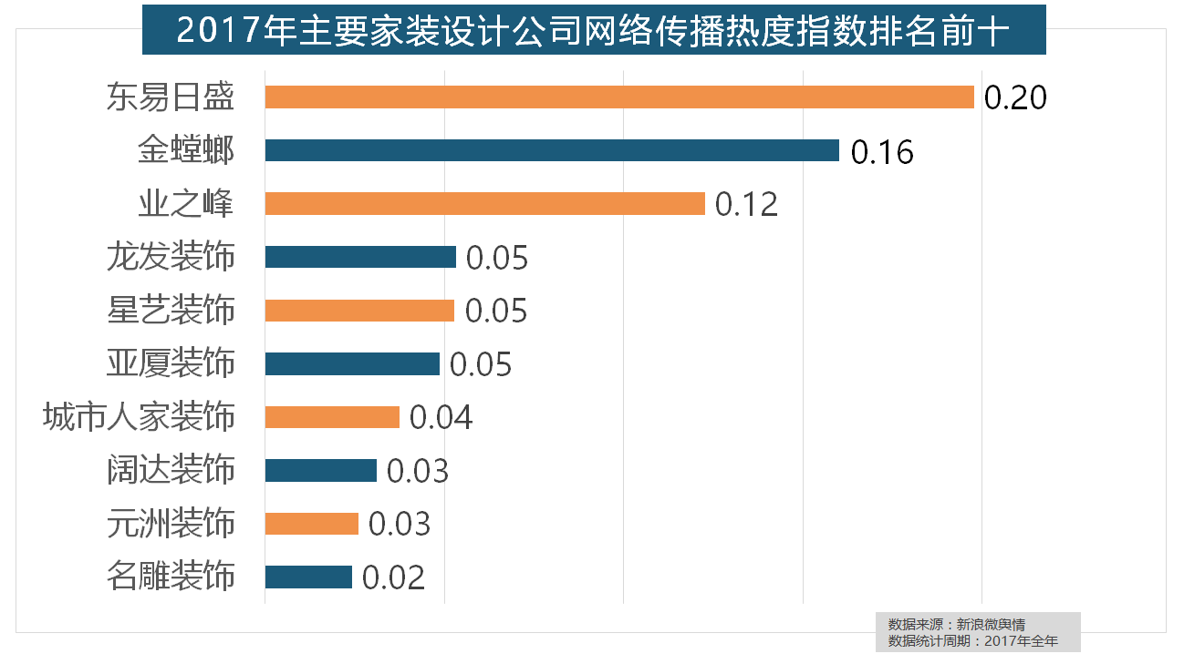 东易日盛正在过去的一年中收集热度指数最高,2017年,据新浪微舆情大数据阐发显示,收集热度指数和全网消息量同比大幅增加。国产物牌占领半壁山河,据新浪微舆情对2017年我国次要家拆设想公司大数据阐发显示,盼盼木门、圣象、美心木门、王力、华鹤紧随其后。福田正在国产开关品牌中热度最高,2017年,飞利浦和松下位列年度灯具品牌前两位!